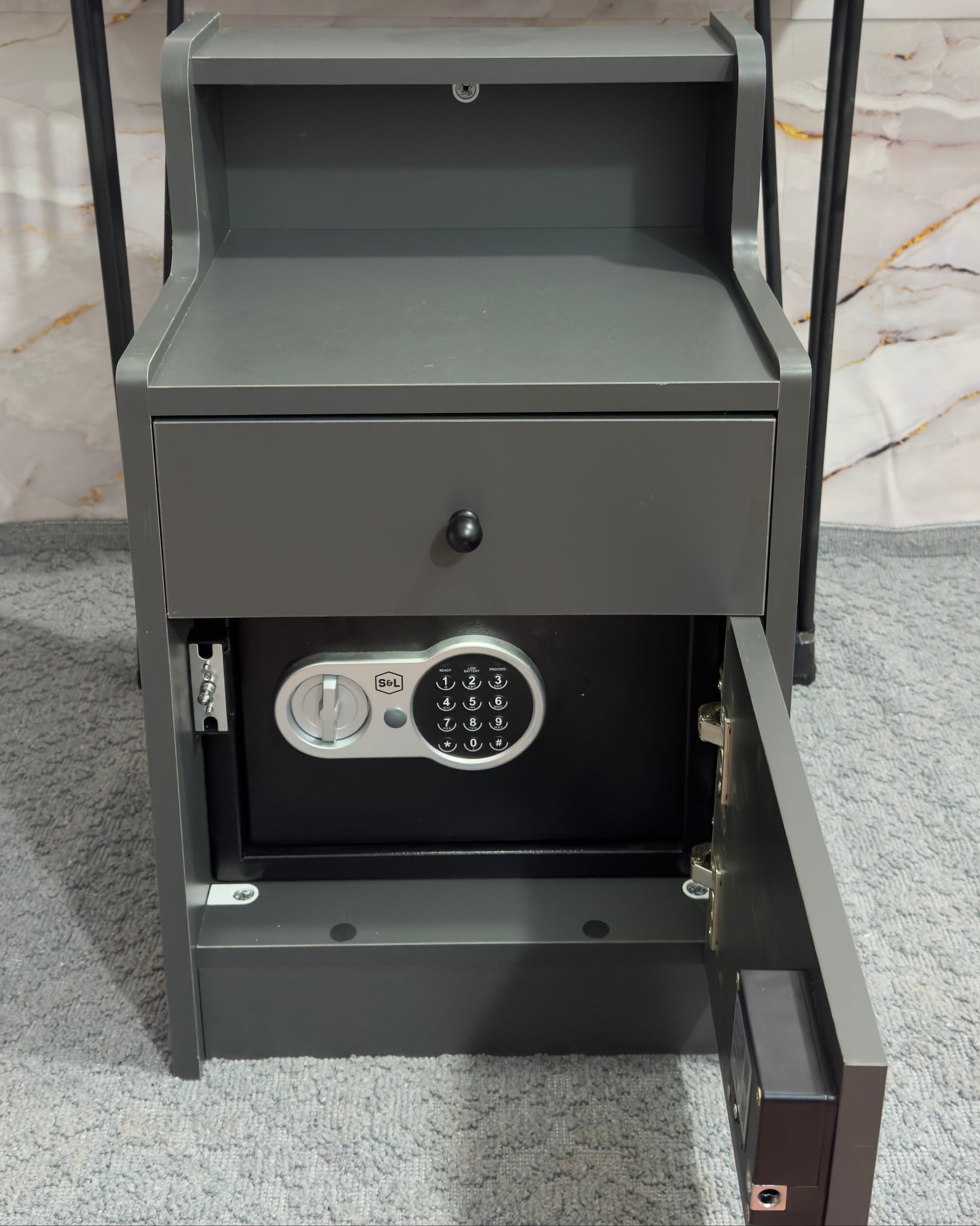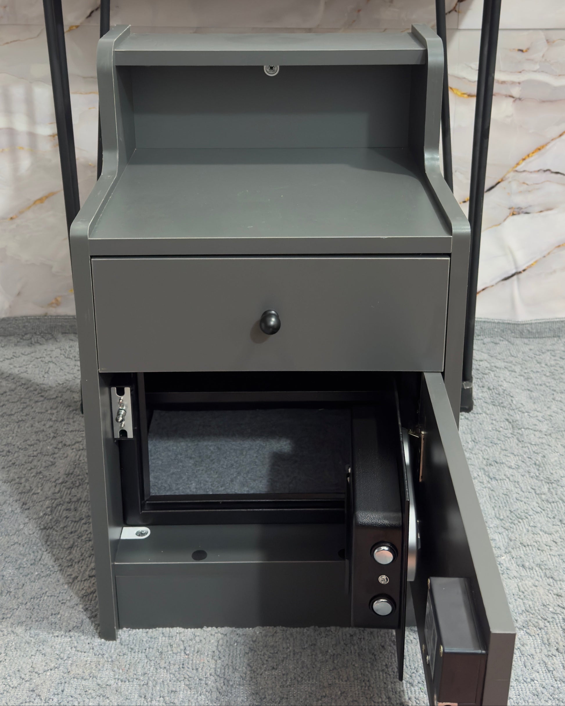 Sadece güvenlik değil, aynı zamanda şık bir mobilyadır. Günlük kullanımda çekmeceleri normal eşya koymak için kullanabilir, üst gizli bölmeyi değerli eşyalar için ayırabilirsiniz.