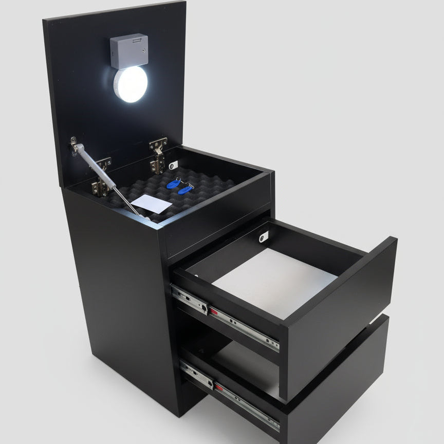 Sadece güvenlik değil, aynı zamanda şık bir mobilyadır. Günlük kullanımda çekmeceleri normal eşya koymak için kullanabilir, üst gizli bölmeyi değerli eşyalar için ayırabilirsiniz.